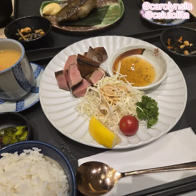 跟好姊妹👭去做facial💆♀️之前先去食個簡單晚餐,在銅鑼灣登龍街見到「味一食堂 Yummy House」門面光猛簡潔,就入去試下😊餐廳內裡裝潢以日式簡約設計為主,環境舒適,坐得也舒服,主要提供多款定食例如咖哩飯、烏冬、意粉、丼飯等,總有一款合你口味😁海老穴子沙𩺬魚天婦羅定食 $118這個定食🍱包括前菜、蟹肉蒸蛋🦀🥚、鹹菜、白飯🍚及味噌湯,更以優惠價$18加配了蜂蜜青檸梳打🍯🍋🟩🥤天婦羅有大蝦🍤、穴子🐟、沙𩺬魚🐟及茄子🍆,穴子肉質綿密細嫩帶微甜,沙𩺬魚肉質清爽,整體天婦羅口感酥脆不油膩,吃前蘸一點秘製的天婦羅醬汁,味道微甜,非常惹味🤩鹿兒島產黑豚肉稻庭烏冬 $98定食🍱包括前菜及小食,我同樣以優惠價$18加配了白桃梳打🍑🥤😊小食是香脆可口的日式炸雞🐔,黑豚肉以薄片涮煮🐷,肉質鮮嫰,口感嫰滑,份量足夠,配料還有海帶及魚板,配搭煙韌軟滑的稻庭烏冬🍜及清甜的醬油湯底,非常惹味🤍…查看更多
