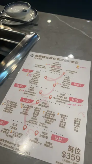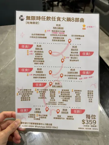 約埋朋友去「味火鍋」烚下烚下😬可以任食7小時食飽飽✌🏻.⚠️此餐廳收取10%服務費💰.精選頭盤+皇牌火鍋拼盤+無限時任飲任食+火鍋五部曲(2位)🍽️套餐$718💰.味火鍋佛跳牆🥣套餐包含💰螺頭、鮑魚🐚花膠、瘦肉🐖瑤柱、金華火腿🍖香菇🍄🟫所有食材入味,湯水清甜香醇☺️.芝士焗波士頓龍蝦🦞套餐包含💰龍蝦充滿鮮味,肉質爽口🤤加上大量芝士🧀附有小沙律🥗.蟲草花椰子雞湯🍲套餐包含💰椰子加上粟米芯味道香甜🥥🌽加上藥材、蟲草花、雞件🐓好足料👍🏻.皇牌時令海鮮拼盤🌊套餐包含💰有新鮮鮑魚🐚新鮮海蝦🦐自家製手打墨魚丸🦑自家製手打蝦丸、日式蟹棒🦀鮑魚大隻彈牙😗海蝦鮮甜爽彈💯.美國安格斯牛肉拼盤🥩套餐包含💰有手切牛小排🐄牛肩胛、牛板鍵🐂牛小排肉質柔嫩😋牛肩胛肉質結實,有咬口😆牛板建肉味濃郁👍🏻.火鍋配料🍢套餐包含💰有美國安格斯肥牛🐮特級豚肉🐖黃金蝦仁棗🍤油麥菜🥬自家制菠菜苗豬肉餃🥟猪骨濃汁貢丸、牛骨清湯牛丸、川辣牛丸🌶️松露香菇貢丸🍄🟫鮮蕃茄🍅灸燒芝心包🧀南瓜片🎃.三式前菜拼盤🥢套餐包含💰有炸雞軟骨🐓中華沙律、芝麻海蜇🪼.甜品(2客)🍮套餐包含💰有Movenpick雪糕🍨.飲品🥤套餐包含💰有荳奶🥛果汁🍊🥭茶類飲品🍵啤酒🍺汽水🫧涼茶飲品🫖…查看更多