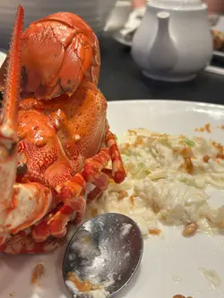 龍蝦球蒸蛋白:大家冇睇錯,橙亮嘅菜式的而且確係蒸蛋白,只係蛋白上多咗層南瓜汁而已。墊底嘅蛋白十分軟滑,已去殼嘅龍蝦肉亦爽脆彈牙,個人自係略嫌甜濃嘅南瓜汁搶走哂龍蝦本身應有嘅鮮甜。