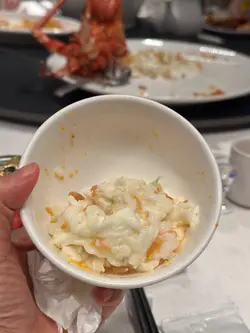 味道唔會太濃龍蝦肉菜螃蟹:龍蝦同賽螃蟹嘅顏色都係白色,都撈埋一齊食,有2種口感,加埋松籽3種口感,非常有層次🥰