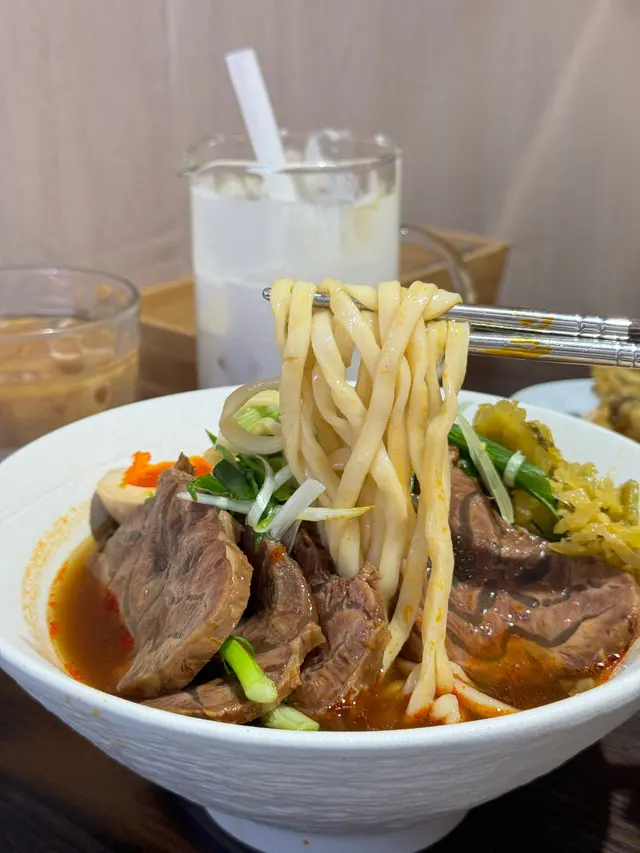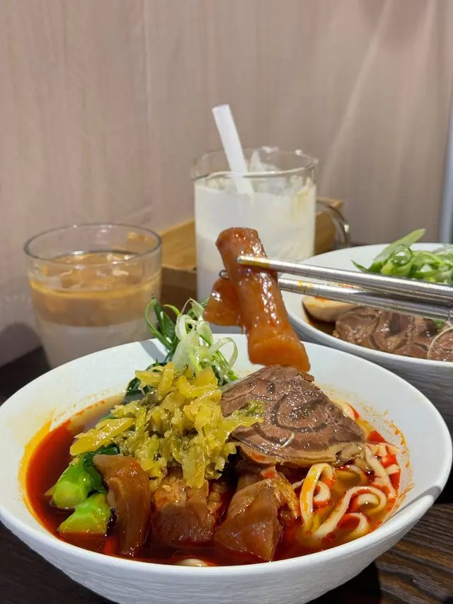 因為要去尖東好時中心工作,所以事前在open rice看看附近有什麼好餐廳。原本不打算吃台灣菜,但看到這間的評價不錯,所以還是去試試。點了台式牛肉麵,牛肉麵的牛𦟌很軟滑好吃,麵也爽滑,湯有點偏鹹。而蔥油拌麵看似簡單但味道喜出望外,尤其喜歡淡淡的花椒結合蔥絲的香味,算是在香港吃過最好吃的台式拌麵,店主應該是台灣人吧?美式咖啡和綠茶也OK,整體價錢適中,算是喜出望外不錯的小店👍🏻如果去尖東,算是不錯的選擇。…查看更多