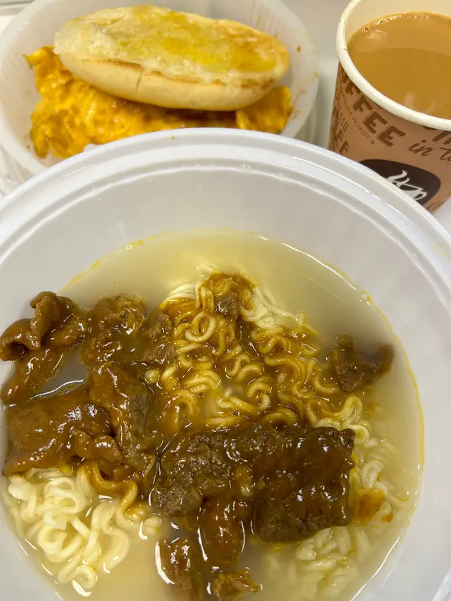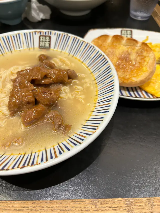 常餐:沙嗲牛肉麵,火腿奄列,奶油豬,茶走