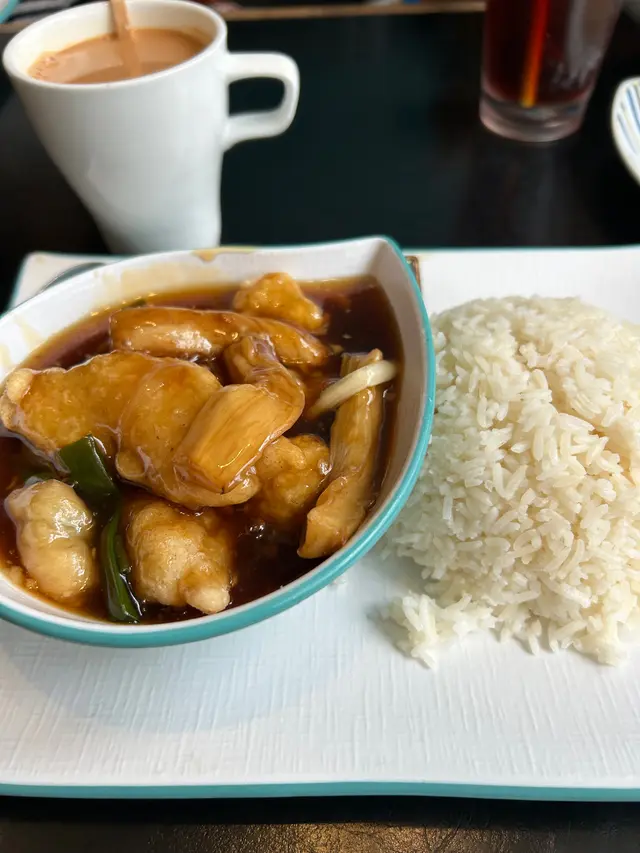 魚香茄子魚塊飯,茶走