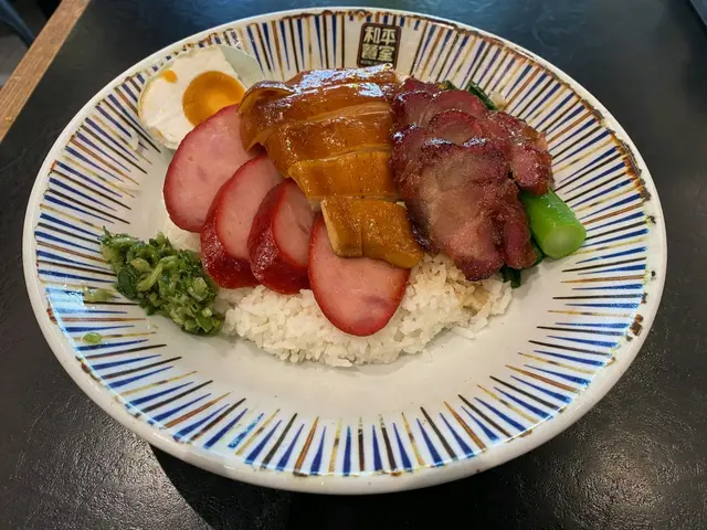 🌌香港美食多如繁星,各國美食都能盡享,但點都要介紹粵菜其中一款港人常吃的燒味,和平餐室與一般茶餐廳一樣就是中西快餐都有齊,但我見佢其中一個小窗展示其燒味實物,所以選它的至尊燒味四寶飯作為午餐。📱因為是手機下單,我選了半肥瘦叉燒,雞就沒有指明要什麼,廚師發板,正常飯量,四寶飯上枱,排得咁靚,睇樣都增加食慾😋,🐔雞唔肥,皮薄好香鼓油香味,肉嫩唔鞋,味道剛好,🐷叉燒唔會過瘦邊邊位好香有焦香且不柴,紅腸及咸旦正常水平。☕餐飲配熱港式鴛鴦,即咖啡奶茶合體,香濃有啡味,唔會太苦,夠奶,做到奶茶的滑口感覺。查看更多