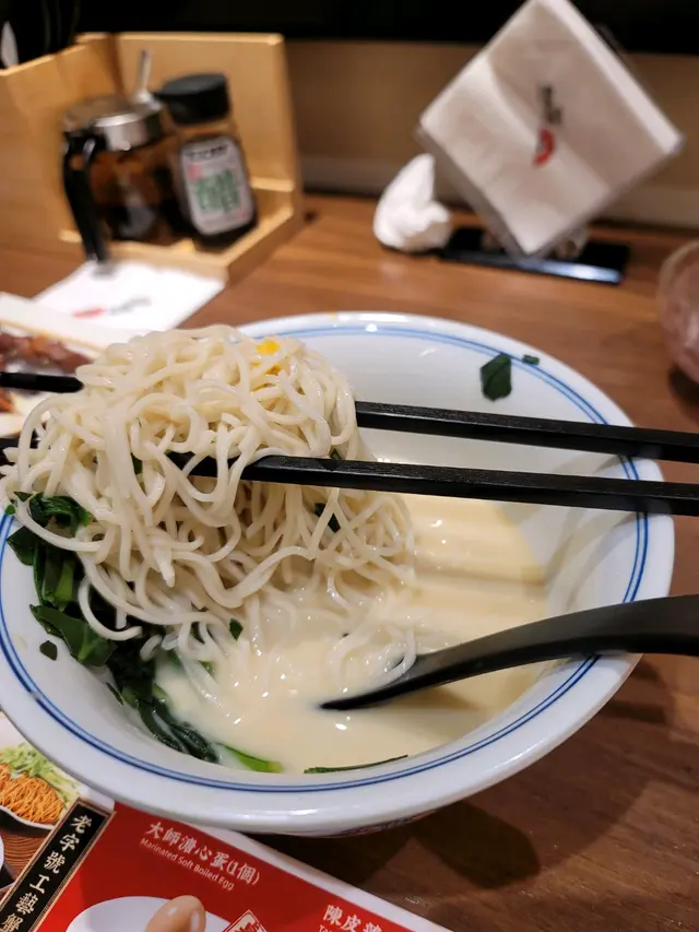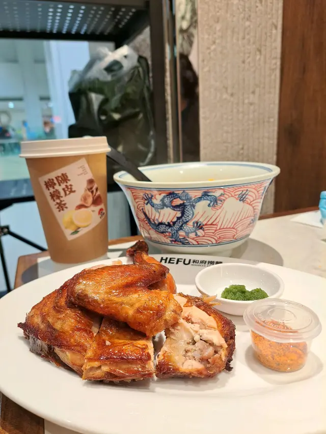 *食物不過不失 走深圳食店風格*食飯期間發生的小插曲 都幾影響用餐體驗*無+1服務費*提供蓋印卡比客人儲印仔 換優惠*QR code落單*免費續麵,食物份量足 唔續麵都好夠飽同frd子大埔圖書館借完書,行過超級城搵食 一過林村河天橋就見到佢地,環境都唔錯 望落都乾淨,下午18:50 店家坐滿5成,除左有2人卡位 仲有自修位同小圓枱,座位組合幾彈性🔸燒雞套餐 $88當歸豬骨湯麵 配 衣藻低脂麵湯底好濃郁當歸味 質感似豆乳般厚,入口便是明顯預製湯底,麵無乜特別味 質地似准山麵爆汁脆皮燒鴨 (另+$7)食緊大隻炸乳鴿既味同感覺,皮香厚肉 肉唔算嫩滑但都唔柴,同碟附上微微辣青醬同辣椒粉,可再食🔸黑塌菜滷肉拌飯餐 $65是大大碗滷肉飯,黑塌菜唔係平時食開既口感/味道,可以一食🔸原味椰漿椰漿厚滑得宜,椰汁味夠🔸陳皮檸檬特飲無打開個杯蓋睇,飲落有檸檬味 唔會太甜飲品跟餐 唔使+錢,特飲一杯杯準備好 存放雪櫃(OpenRice建議提供單據)…查看更多