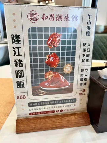 今次同屋企人去到位於太子嘅和昌潮味館食晚飯,因為係有親戚話呢度嘅嘢食好食於是今次嘅聚會晚飯決定喺呢度進行,叫咗幾個餸,分別係滷水鵝、炸豆腐、欖菜炒飯、芋頭飯。最有驚喜嘅係個欖菜炒飯,睇落平平無奇,但食落去非常之夠鑊氣,另外嘅芋頭煲仔飯味道中規中矩,不過勝在九月係芋頭最好食嘅時候,芋頭非常香。至於用潮州菜行頭嘅餐廳,是佢嘅滷水鵝同炸豆腐,反而我就覺得係正常發揮。甜品係叫咗清心丸綠豆爽,食落好清甜好滋潤,不過缺點就係剩係得熱,如果夏日炎炎有凍食嘅話咁就好啦。八個人埋單,大約$1500 ,總括而言食物嘅話唔會專登上去嗰度食,但係座位上就非常闊落,因為係一條街上面有兩間分店,其中一間分店淨係得兩圍枱,座位非常闊落,如果係20幾人嘅家族聚會,基本上就可以包咗場咁樣去食。…查看更多