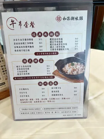 由和昌快餐店第二代接手後創立的潮州菜館,走中式裝潢,讓你在舒適的環境下,細嚐濃味而恰到好處的招牌滷味、潮式小菜,及需提前預訂的手工菜。