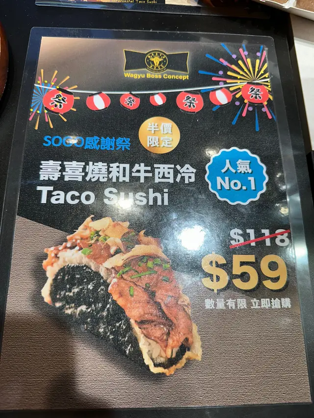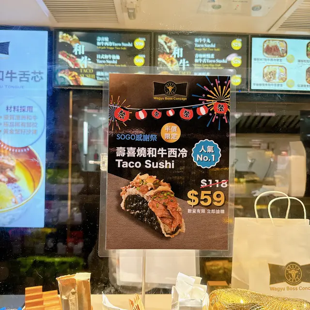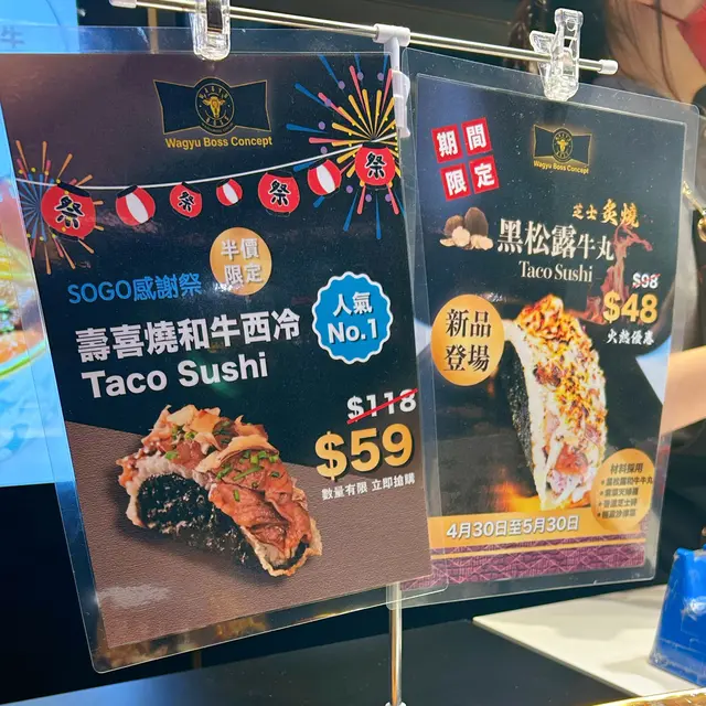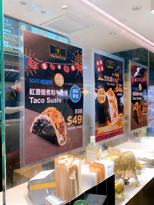和牛波士概念店 (銅鑼灣) 網址: https://s.openrice.com/QrbS0AoGD00 地址: 香港銅鑼灣軒尼詩道555號崇光百貨B2樓14B號舖