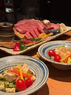 呢間餐廳由日本JA全農集團直營,和牛從日本多個縣市直接進口,所選用嘅和牛屬最頂級A4同A5和牛🎌最近以佐賀縣和牛主題製作燒肉料理🐂🐃特選和牛燒肉二人餐($1680)💗前菜三款牛肉他他卷輕輕火炙,中間捲入蘿蔔絲,配搭醋汁同啫喱,微酸開胃🥕蟹肉茶碗蒸滑捋捋,啖啖都食到蟹肉好足料,再以冬菇同魚子醬點綴,更加鮮味🦀蘿蔔鮑魚屬於較清淡嘅開胃菜,鮑魚煮得Q軟彈牙,蘿蔔清甜無根🐚💗是日刺身章紅魚肉質爽口富彈性;拖羅口感肥美帶豐潤魚油香,最正係兩款刺身都係好厚切🐟💗時令沙律牛油果鮮蝦沙律加上粟米同車厘茄,搭配特調和風芝士醬汁,非常清新開胃🥗💗和牛壽司兩件生和牛壽司將和和牛剁碎成他他,放上炸京蔥絲,有肉味得嚟帶點清爽;火炙和牛壽司令醋飯吸收和牛嘅油脂香,肉香同米香完美融合🍣💗特選和牛西冷和牛西冷呈大理石油花紋理,建議烤至五成熟,特顯其肉質鮮嫩,食落肉味濃郁同時帶油膩香🥩💗特選和牛牛排肉特選和牛牛排肉係油脂最重嘅一款,肉質細膩而且入口即溶,整個口腔充滿油脂🤤不過食多幾片真係會膩🤣💗和牛上等牛排肉和牛上等牛排肉肉質柔軟幼嫩,帶細緻嘅脂肪分佈,非常邪惡🐮💗日式壺漬和牛牛排肉壺漬和牛排肉用特製醬汁醃製,食起嚟帶醬汁甜味,而且肉感較多好juicy🧉💗辛辣厚切豬腩肉選用熊本豬腩片,三層肉肥瘦相間,大火燒將油份迫出,非常焦香,加上用韓式辣醬醃製,微微辛辣好惹味🌶️💗蔥燒長條牛舌選用澳洲牛舌,爽脆彈牙嘅薄切長牛舌包住特製蔥鹽醬食好惹味👅💗海鮮釜飯店員即席將海鮮醬油倒入釜飯中拌匀,暖笠笠嘅釜飯香氣十足,入面仲有蝦、魷魚同帶子,吸收哂海鮮嘅鮮味🦐💗是日餐湯食咗咁多燒肉飲番一碗清爽淡雅嘅雞蛋湯,入面有蛋花、紅蘿蔔,冬菇、金針菇同蔥、洋蔥,有助解膩🍲💗是日甜品以冰涼清爽嘅柚子雪葩,同香甜多汁嘅日本哈蜜瓜為整餐飯畫上完美句點🍈…查看更多
