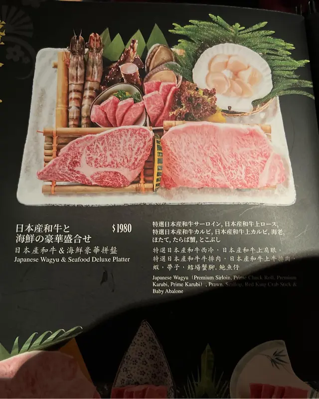 餐廳相當近銅鑼灣地鐵站,非常方便。餐廳地方唔大,但好驚喜兩個人竟然比左間四人包廂房。點咗個二人套餐 「日本產和牛&海鮮豪華拼盤」,$1980,但份量都幾多下。和牛有四個部位,分別係西冷、上肩眼、牛排肉、上牛排肉,冇渣之餘,入口甘香,個個部位都咁好味!海鮮都有四款,有蝦、帶子、鱈場蟹腳、鮑魚,最愛鱈場蟹腳,超鮮甜,其實其他海鮮都好好味,而且大隻。好喜歡二人包廂房,私隱度超高,店員服務好好,大滿足嘅一晚!…Read More