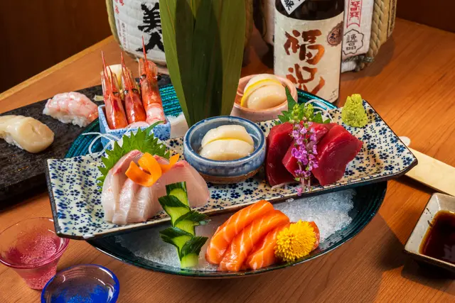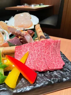 雞絲肉味濃郁,選用日本走地雞🐓新鮮青瓜片捲着翠綠沙律菜,口感爽脆,清新開胃日本產和牛 & 海鮮豪華拼盤