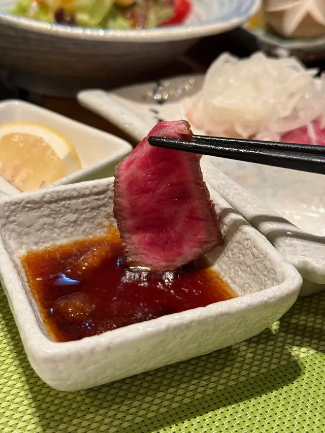 和牛上肩眼雪花分布平均,口感滑嫩多汁,非常高質!和牛西冷充滿細緻的油花,牛脂感最重白飯 & 麵豉湯
