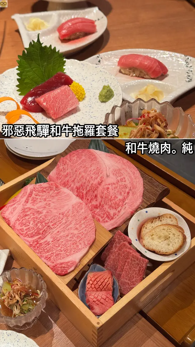 海鮮拼盤包括:鮮蝦,帶子,鱈場蟹腳,鮑魚仔✨鮑魚及鮮蝦份量十足,口感彈牙;帶子及鱈場蟹腳都好鮮甜呀!特選日本產和牛牛排肉 & 日本產和牛上牛排肉