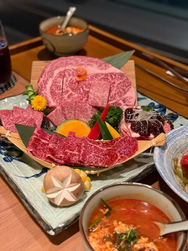 日本珍珠米飯粒粒分明,配和牛就啱晒👍🏻麵豉湯加咗牛肉同蘿蔔一齊烹煮,滿載鮮味甜品拼盤