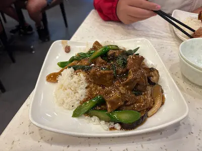 有一天,因為要去取貨,一家人晚上就出現在西貢墟的街頭了。在晚上,一家人又沒有必要花費食大餐。所以,我們一家四口既飲食選擇就是茶餐廳。然而,最多選擇的地點,就是巴士站一帶。最後,因為有店姨姨在門外拉客,我們就來到《和記餐廳小廚》,一人一碟飯了。那一晚,太太要的不是飯,而是一份羅漢齋炒麵。簡單地用本耳,冬菇,腐竹,芽菜同芥蘭做配搭,是純蔬的好味道。再加上麵餅夠脆而沒有燶。汁的份量算是剛剛好,能夠保持底下的麵脆卜卜,負責每碟都吃一點的女兒,最喜歡就是脆卜卜的炒麵啊。兒子來了一個雞扒豬扒飯。這是一個只是用豉油汁做味道的飯,頓時,令到成個飯好學生 feel。不過,我覺得這一碟飯好 dry,好沒有味道。但看見兒子吃得很開心。這立即令我回想起中學時,有這樣的一個飯,的確是很滿足。我比賽喜歡有汁的碟頭飯,所以,我當晚的選擇是菜遠牛腩飯。牛腩的味道濃烈,汁的味道也夠濃香。再者,大大件的牛腩除味道夠濃香之外,入口也是腍腍的。兩個小朋友時不時夾走我一件牛腩來吃。有時候,簡簡單單的一餐,係可以好開心快樂的。這一餐,簡單而美妙,一家人開開心心,就是感覺良好的一餐。夜晚一人一碟飯,輕鬆快樂。…查看更多