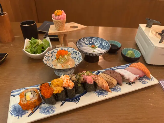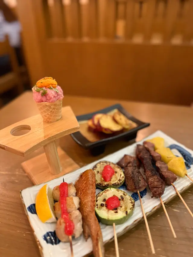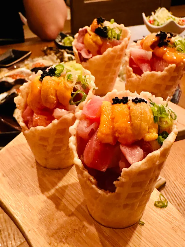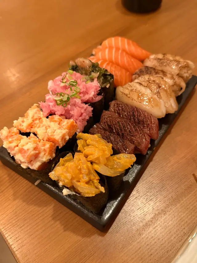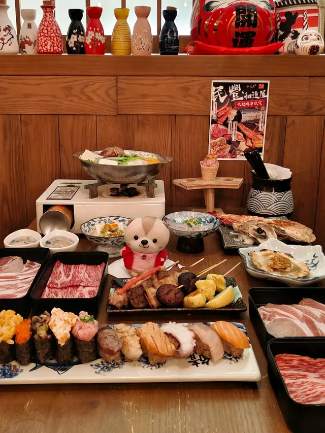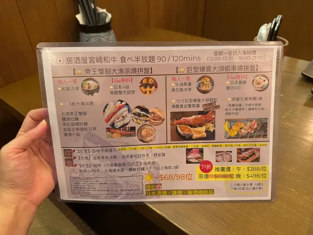 在尖沙咀的居酒屋宮崎和牛,一場美味的盛宴正等待著我們的到來。這裡的午市套餐讓食客在90分鐘內隨意享用,簡直就是吃貨的夢想!(順便一提,有一些食物是任食的,而有一些菜式則是按人頭計算。)。一進門,就被即做手握壽司的香氣撲鼻而來。油甘魚、三文魚、火炙三文魚……好像每一種魚都在呼喚著我!尤其是火炙左口魚邊,那微微炙烤的香味,讓人忍不住一口接一口。還有飛魚籽和海膽魷魚,真的是讓人驚喜連連!。鍋物方面,我們可以選擇壽喜燒湯底或日式豆乳豚骨湯。筆者和朋友各選了一款,鍋中煮著宮崎A4和牛、北海道米豚和廣島牡蠣,色香味俱全。肉質鮮嫩,簡直可以說是肉食者的天堂!。套餐一:帝王蟹腳大漁浜燒拼盤套餐一上桌,帝王蟹腳大漁浜燒拼盤就吸引了我們的目光。首先,和風沙律清新的口感讓我們的味蕾瞬間覺醒,搭配著日本A級海膽蟹肉甜筒,簡直是海洋的味道在舌尖上舞蹈!接下來的五款大漁浜燒,每一款都讓我們驚呼連連。。- 北海帝王蟹腳:肉質鮮甜,讓人忍不住再來一塊!- 鹽燒牡蠣:那種海水的鮮味,彷彿把我們帶回了大海。- 金蒜芝麻燒帆立貝:香氣四溢,金蒜的味道完美融合,令人陶醉。- 鹽燒大蝦:大蝦的彈牙口感,讓我們的每一口都充滿驚喜。套餐二:巨型爆膏大頭蝦串燒拼盤接著,巨型爆膏大頭蝦串燒拼盤也不甘示弱。牛油果醬凍豆腐沙律,清爽又有層次,讓我們的胃口大開。而那6片薄切的日本真鯛,鮮嫩得讓人不敢相信!最驚艷的當然是那隻10寸的巨型爆膏大頭蝦,搭配海膽黃金蟹膏醬,簡直是視覺與味覺的雙重盛宴!每一口都是濃郁的海鮮風味,讓我們不禁感慨:“這就是人生的極致享受!”還有那五串特選生燒串燒,焦糖菠蘿的甜蜜,千歲米豚腩的香嫩,明太子雞腿串的獨特風味,以及鹽燒和牛粒、燒鮮冬菇的完美搭配,真的是讓我們忍不住一串接一串!…查看更多