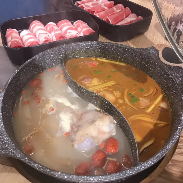 位置非常方便,就位於銅鑼灣糖街戲院上層,佔地成5000呎🤭咖啡爸爸的重點係它以實惠的價錢體驗酒店時式火鍋放題🤤湯底🥘平時打邊撈都一定要店調味醬,但係呢個咖哩湯底非常濃郁,肉係完全入味,不需要再用調味👍🏻👍🏻除左咖哩湯底,仲試左個對女仔好好的養顏花膠雞鍋,鍋的料亦好足料,有成隻雞仲有好多花膠,滿滿的骨膠原😍岩曬女仔食食物款式🤤店內有不同套餐,分別會有安格斯牛,鹿兒島黑豬肉,肥羊肉,農場雞肉,仲有部分海鮮🦐除左呢d點的食材,仲有自助區有好多款不同的菜以及好得意的丸類。…查看更多