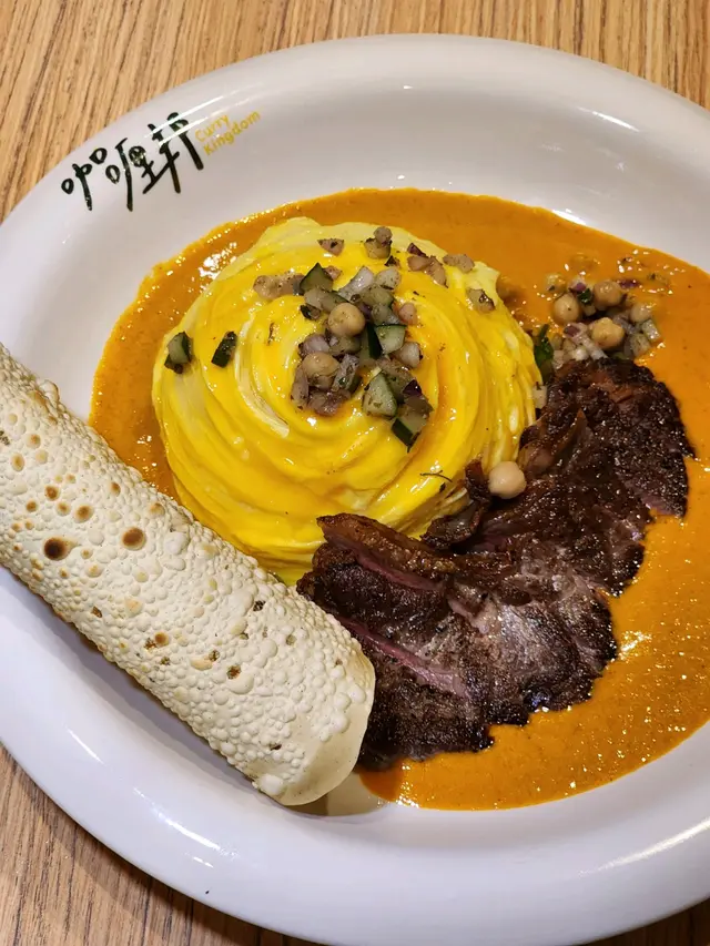 Curry Kingdom is a newly opened modern and casual curry restaurant that specialises in Asian curries. They also serve a range of pan-Asian snacks and desserts! 🍛 Pic 1️⃣: 𝐈𝐧𝐝𝐢𝐚𝐧 𝐂𝐮𝐫𝐫𝐲 𝐁𝐞𝐞𝐟 𝐒𝐢𝐫𝐥𝐨𝐢𝐧 - $178 hkd 🥩🍛 — This was pretty good! Opted for level 3 spice here for that extra kick and it was perfect for our palate. The curry was perfectly flavoured and very fragrant without being overpowering. Flavours were really well balanced and went really well with rice. The omelette on top was definitely an interesting twist as it resembled a Japanese omurice but it actually worked really well with the Indian curry! The sirloin steak was quite overcooked, leaving it quite tough. It was also under-seasoned. The papadum on the side was a nice touch and added a nice crunch to the dish.Pic 2️⃣&3️⃣: 𝐓𝐡𝐚𝐢 𝐆𝐫𝐞𝐞𝐧 𝐂𝐮𝐫𝐫𝐲 𝐃𝐮𝐜𝐤 𝐁𝐫𝐞𝐚𝐬𝐭 - $158 hkd 🦆 — Was honestly quite skeptical about this at first 😂 but we decided to be adventurous and try this out and were pleasantly surprised! The noodles were actually pretty well cooked with a chewy, al-dente bite to them. The green curry sauce was rich, flavourful and had a strong umami profile to it. The spice level was perfect and had the perfect kick to it which was very aromatic. The duck breast unfortunately was a bit disappointing as it was quite dry and had no seasoning whatsoever. The vegetables on the side were good accompaniments and had more flavour than the duck breast for sure.Pic 4️⃣&5️⃣: 𝐒𝐢𝐝𝐞 𝐒𝐚𝐥𝐚𝐝 𝐚𝐧𝐝 𝐒𝐨𝐮𝐩— Very standard side salad, the cauliflower soup was pretty flavour with a good smooth, creamy consistency to it.查看更多