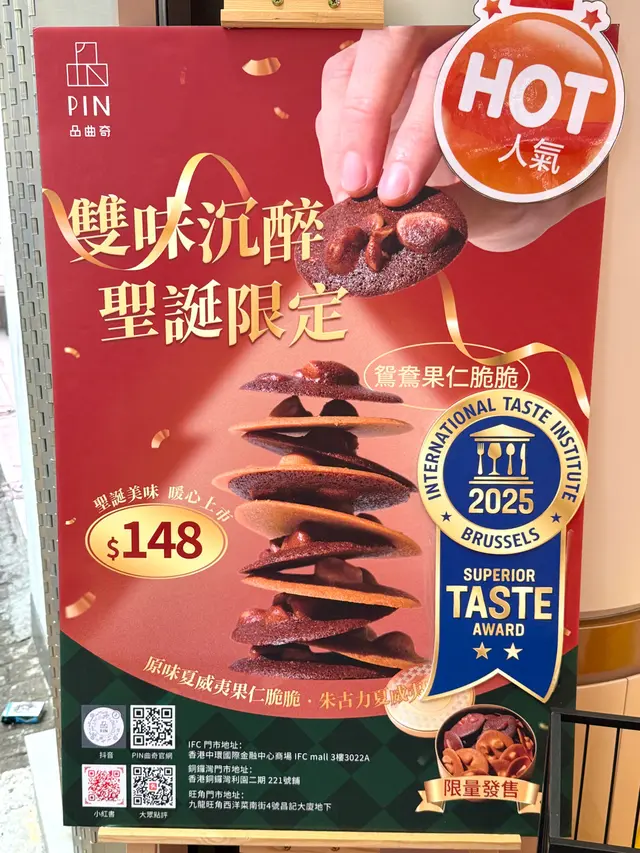 路經見到間店舖好搶眼,充滿香港懷舊風格,而且勁多打卡位📸,原來係香港創立嘅品牌《品曲奇》响旺角開咗新舖,當然要入去朝聖下喇。佢哋有創意之餘,仲好有港式風格,而且口味獨特,同時包裝設計亦好用心。店內好多款式都可以試食,可以試到啱先買;仲有多款得獎產品,好似有夏威夷果仁鳥結糖、原味牛油蝴蝶酥、鹹蛋蝴蝶酥、紅棗曲奇、朱古力果仁脆片等。另外仲有好多創意口味曲奇🤩,例如有:蝦膏、XO醬、蔥油雞、紅棗等,最緊要係不含防腐劑及色素,真材實料👍。無論送禮定自肥都一樣咁正,今次買咗👇:🍪果仁脆脆:有原味及朱古力味,曲奇口感非常香脆,美國果仁超新鮮,朱古力味更於2025獲獎🎖。🍪鹹蛋曲奇:曲奇口感鬆化,鹹蛋味濃郁,港式風格亦甚濃。🍪快樂果醬曲奇禮盒:禮盒內有原味、果醬牛油、果醬朱古力及菠蘿果醬荔枝,曲奇口感同樣鬆化,配合面頭口感QQ不同味道嘅果醬,最鍾意菠蘿果醬荔枝,濃郁甜香嘅菠蘿醬配合芳香嘅荔枝曲奇,創意及味道滿分😋。…查看更多