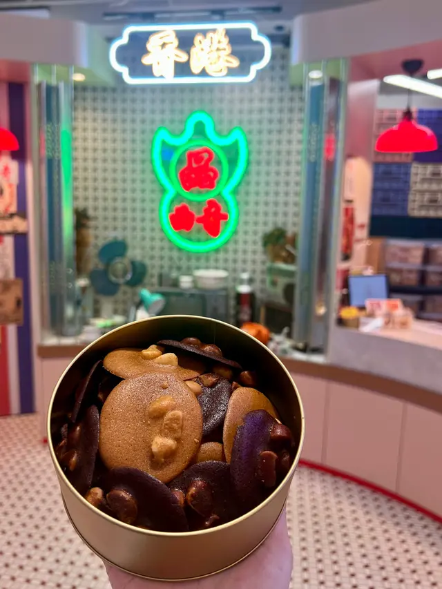 路經見到間店舖好搶眼,充滿香港懷舊風格,而且勁多打卡位📸,原來係香港創立嘅品牌《品曲奇》响旺角開咗新舖,當然要入去朝聖下喇。佢哋有創意之餘,仲好有港式風格,而且口味獨特,同時包裝設計亦好用心。店內好多款式都可以試食,可以試到啱先買;仲有多款得獎產品,好似有夏威夷果仁鳥結糖、原味牛油蝴蝶酥、鹹蛋蝴蝶酥、紅棗曲奇、朱古力果仁脆片等。另外仲有好多創意口味曲奇🤩,例如有:蝦膏、XO醬、蔥油雞、紅棗等,最緊要係不含防腐劑及色素,真材實料👍。無論送禮定自肥都一樣咁正,今次買咗👇:🍪果仁脆脆:有原味及朱古力味,曲奇口感非常香脆,美國果仁超新鮮,朱古力味更於2025獲獎🎖。🍪鹹蛋曲奇:曲奇口感鬆化,鹹蛋味濃郁,港式風格亦甚濃。🍪快樂果醬曲奇禮盒:禮盒內有原味、果醬牛油、果醬朱古力及菠蘿果醬荔枝,曲奇口感同樣鬆化,配合面頭口感QQ不同味道嘅果醬,最鍾意菠蘿果醬荔枝,濃郁甜香嘅菠蘿醬配合芳香嘅荔枝曲奇,創意及味道滿分😋。…查看更多