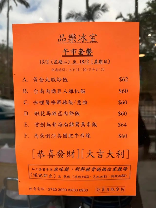 品樂冰室 (荔枝角) 網址: https://s.openrice.com/QrbS0iQKB00 地址: 香港荔枝角蘭秀道6A-6B號美孚新邨第五期地下N20號舖 電話: +852 27203099