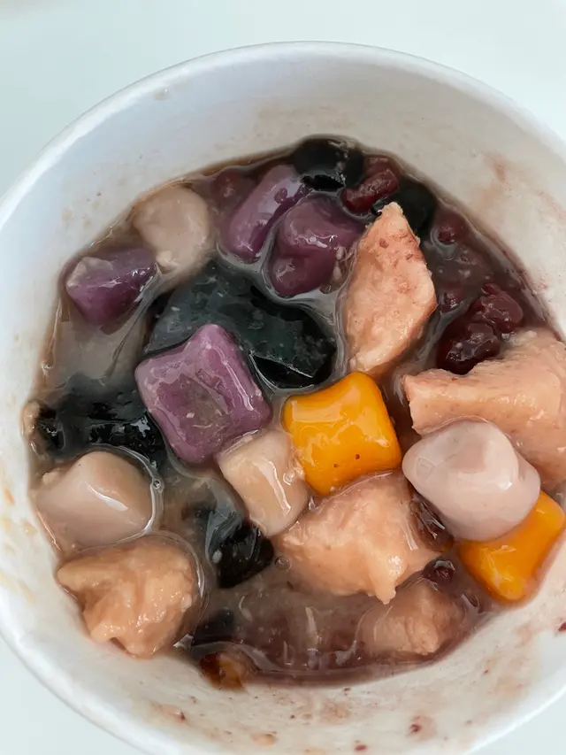 🥣綜合芋圓 $35底料2選1 跟著甜湯底2選1 最後就係配料8選3揀咗仙草凍走糖水 九份芋圓 紅豆 同埋芋頭雖然個紙兜睇落唔係超大但都幾足料厚厚嘅仙草墊底 超級滑捋捋但無咩草藥味值得一讚嘅係仙草係凍嘅 唔會話微暖怪怪哋相反芋圓就微暖 淺紫6粒 深紫3粒 黃色就得2粒 深紫色同黃色都食得出薯味 不過淺紫嘅芋頭味就唔太出🤨 芋圓質地煙韌得嚟粉粉哋 感覺好天然紅豆煮到腍身 唔係粒粒分明嗰種不過就略顯甜咗啲+🍠芋頭 $7芋頭有5大舊 又粉又香好出色💜查看更多