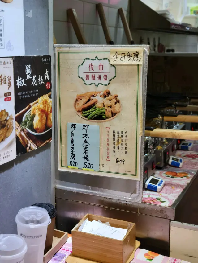 台式茶飲店越開越多,呢間茶飲店比較特別,除左賣飲品之外,竟然仲有芋圓、拌麵、剉冰、唔同種類既小食賣,簡直比得上真正既台式餐廳。小小店舖,包羅萬有,企係menu前諗左好耐,最後揀左邪惡既炸物😈🔥。 🍴夜市鹽酥拼盤1 $45望落個盒有d細,但入面份量都唔算少,作為小食兩個人share都夠。入面有鹽酥雞、椒鹽魷魚、百頁豆腐同炸地瓜薯條。本身對茶飲店賣食物都唔抱太大期望,但食落真係有驚喜,每款食物都係好食既!鹽酥雞炸得香脆,肉質唔乾,一啖一粒超爽。魷魚鬚大大條,唔係炸漿多扮大條,咬落唔會韌。百頁豆腐炸完仲保持到軟嫩既質感。地瓜薯條外脆內軟綿,甜甜鹹鹹好味。整體調味都啱啱好,唔會鹹到要洗腎。推薦!查看更多