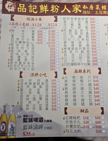 品記鮮粉人家私房菜館 (土瓜灣) 網址: https://s.openrice.com/QrbS0vVCA00 地址: 香港土瓜灣浙江街18號利·港灣18 1樓 電話: +852 66778816