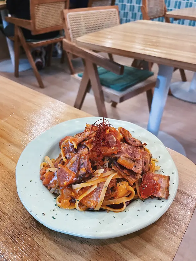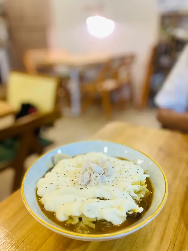 落雨天去cafe坐下,呢間cafe本來應該唔多人知,一個mv 就令神徒蜂擁而至。小店cafe ,比我預期中少人,12點去到有三張枱有人,拍MV嗰張一早俾人book咗,我哋就坐靠近窗嘅四人枱。綠色嘅裝修好文青,有indoor同outdoor QR code 點餐,無set豬扒南瓜飯,飯質感麻麻,豬扒炸完又加少少汁,所以唔香脆雞扒bagel , 太濃味蜆意粉,太辣我要凍飲,但其實熱飲深綠色杯打卡重點🤣🤣, 凍飲係mocha , 面有條kitkat 😅…查看更多
