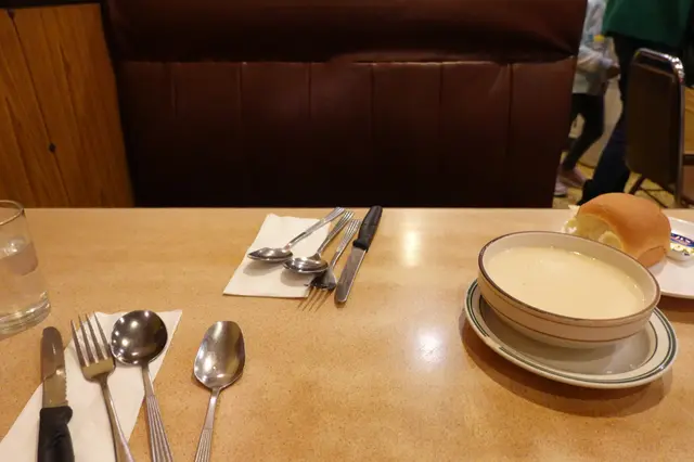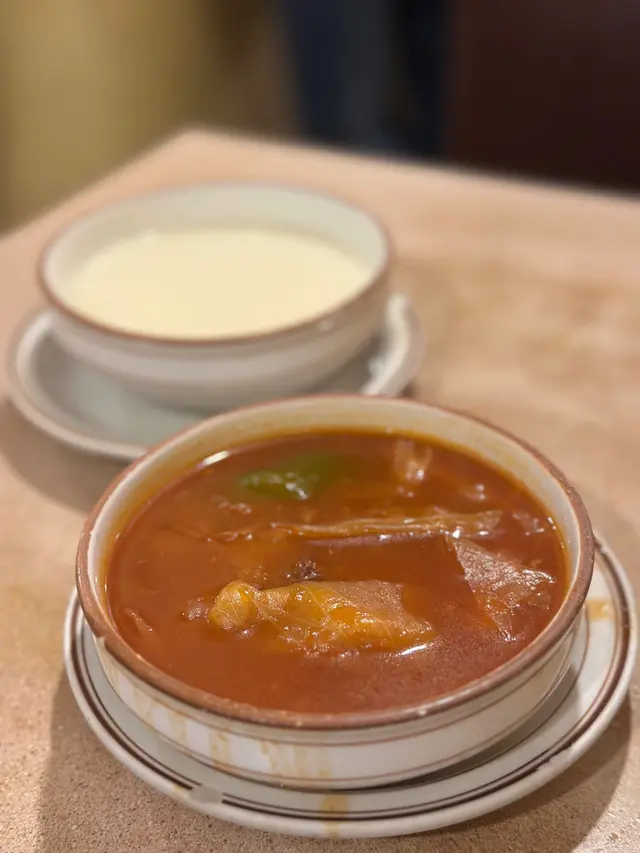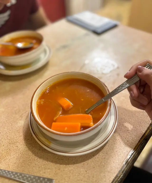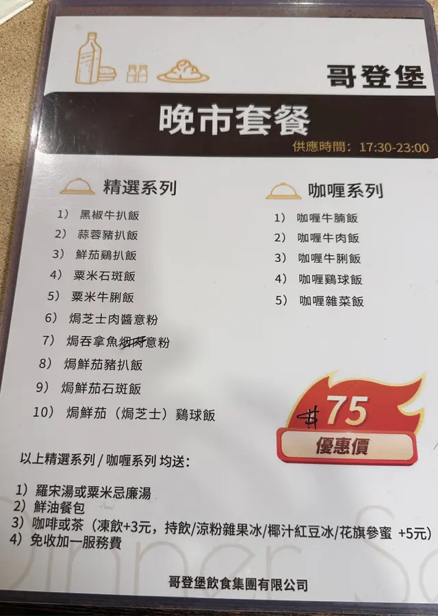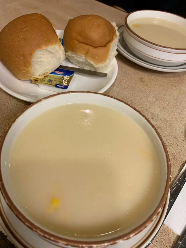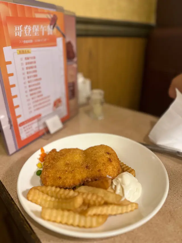 今日一個人來到這間懷舊餐廳吃午餐,去年宣布結業時也沒有來,殊不知它竟涅槃重生了,哈哈。一進餐廳,我便選了卡位坐,侍應立即來問我要什麼湯(紅/白,明明餐都未點),我選了白湯(即忌廉粟米湯)。白湯三分鐘之內便來了,感覺普通,麵粉味有點重,忌廉味不足,勝在夠熱。想了一下,點了咖哩牛腩飯餐,$66,跟熱奶茶。飯餐6分鐘之內便到了,牛腩夠淋,而且有筋腩,份量也算多,不錯~。咖哩就普通港式咖喱,唔算特別,但這個價錢唔出差錯我已經收貨。奶茶都唔錯,有足夠茶香也夠熱,是標準香港餐室水平。環境方面,餐廳燈光較為昏暗,有懷舊風;服務態度好,上菜相當有效率,作為食客我也不敢太慢,全個用餐時間在半小時之內。我是在中午前到的,如果再遲少少到就要等下位同埋卡位俾人坐哂。…查看更多