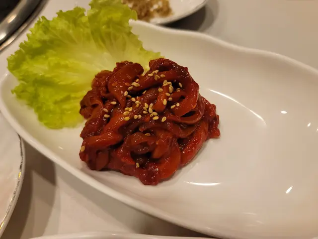 阿豬媽介紹,叫左套餐:濟洲五花肉+濟洲豬肩肉+韓豚調味排骨+生菜,韓國空運到。一分價錢一分貨,肉質品質和韓式風味的還原上都很出色,原本覺得會不夠,但食完覺得好飽,啲肉份量好足。餐廳好適合朋友聚會、情侶聚或家庭樂。濟洲五花肉焦香十足,肉質肥瘦相間,唔會燒完乾哂,看似油卻不膩,肉汁豐富,唔包生菜食一樣咁和味。濟洲豬肩肉表厚但唔係脂肪,咬落煙韌,肉質外脆內嫩,包埋生菜食,口感更豐富。韓豚調味排骨甜甜地,肉質軟腍,帶濃郁醬汁風味,而排骨肉香入味,配生菜一流,中和甜膩。阿豬媽又介紹左支韓國空運嘅有氣紅茶,有驚喜,又唔會好甜,好似飲緊有氣嘅冰紅茶咁,好好飲啊!…查看更多