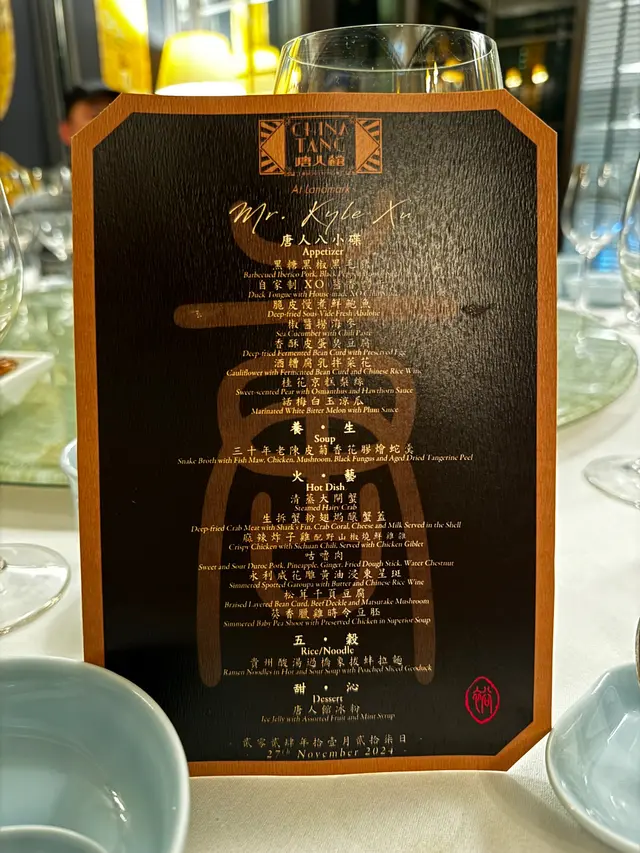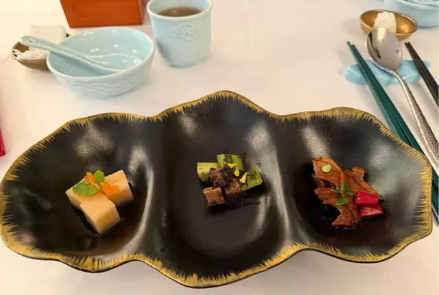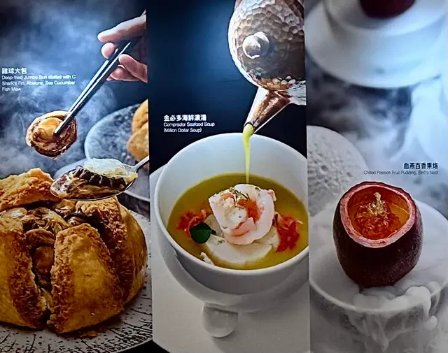 今日到這家餐廳。餐廳的裝修富麗堂皇。今日試一下佢哋嘅精選午餐同點一個招牌乳鴿。前菜有准山、牛撩青同醬鴨。准山有鹹柑桔味,口感清爽;醬鴨是麻辣香,口感軟滑。豚肉燒賣大大粒,味道鮮美唔肥膩。蝦餃飽滿爽口,大大粒,皮也薄。素蒸餃味道輕盈,味道雅淡。老火湯好正!是杏汁豬肺湯!湯汁味濃,滿是杏仁香,味道又鮮,唔油膩,正!子薑脆皮帶子好正!鬆化脆脆的皮包住嫩滑帶子,外脆內軟,加上子薑汁酸酸甜甜的,十分可口!乳鴿單點好正!未吃過咁正的乳鴿!乳鴿皮薄脆香,爆汁!鴿肉皮脆肉嫩,相當入味,透出玫瑰露幽香,滋味十足,真叫人回味!荷葉飯的鮑魚大大隻,口感軟滑,加上清香的荷葉飯,熱乎乎,口感軟硬適中,不錯。雪棗糕口感軟糯又有彈性,淡淡的紅棗香,輕輕的甜,不錯。…查看更多