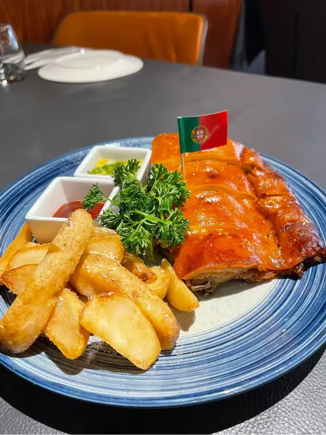 西班牙同葡萄牙既菜式一次過滿足晒 味道正宗得嚟又特別😊葡式乳豬$220燒得非常香脆☺️一咬爆汁😘表皮香脆😊豬肉嫩滑😉內裡的肉質濕潤多汁😘輕鬆就能切開😉好鍾意佢個特別醬汁😊配搭大薯條🍟食得出新鮮炸熱辣辣😉好邪惡燒馬介休$250將葡國鹹魚烤至外香內嫩😊鍾意佢表面有d脆脆🤭同埋橄欖🫒風味獨特蒜蓉西蘭花$45上面2款主菜太飽😆😆立即叫返個菜中和返個肥膩感😆😆😆新鮮菜所以香脆爽口😉