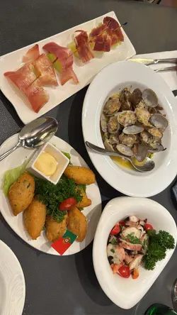 好耐冇黎澳門趁得閒黎左澳門呢度兩日一夜relax下🤣又想食下葡萄牙菜,上網見到好評就黎試下。我地兩個人叫左四樣餸西班牙火腿,火腿不錯,可以一試👍👍👍八爪魚沙律,優秀,食到我哋舔舔脷👍👍👍👍👍葡式炒蜆,蜆新鮮,冇沙,味道好好,汁好好味,汁點埋個包食仲正👍👍👍👍👍葡式馬介休,炸得酥脆,唔會油膩👍👍👍👍👍總括嚟講,我覺得呢間餐廳都唔錯,環境又好,坐得舒服,食物亦都唔錯👍