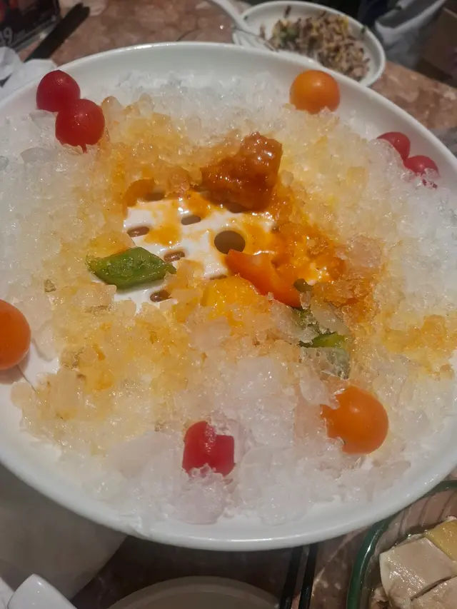 Recommended by my companion to be spending our evening catching up at this restaurant was definitely a good choice. Their plates definitely gave a big wow factor. It was a simple white plate with few ants printed. Looking real which gave me a shock. My companion said his last time was flies, which again shocked him. Orders made via QR code. Menu serves a lot of options, both dim sum and stir fry dishes. Golden black lava bun was served first. Appropriate size with great steaming. Watch out for your first bite. Custard not only leaked from your bite but from the bottom. Soft bun with fragrant mild sweet custard oozing out. The dusted gold on top definitely stick over your lip that few wipes were needed. Mince stir fry with green beans was in good sharing portion. Perfect to be served with rice. Very savoury with wok flavour. A bit salty eating on its own. Green beans gave a nicely crunch. Iced sweet and sour pork was another star tonight. Pork was fried with right amount of batter which gave crunchy texture while well coated with the syrup. Sticky and crunchy. Love the bell peppers and pineapple alongside. Right amount of ice which didnt melt into all water making the dish watery or messy. Not bad.Deep fried bonbay fish was okay. A bit salty. Love the loaded garlic and chilli. Looks spicy but not. Bonbay fish was soft and fresh. Thin batter gave extra crispiness. Beef charsiu was a surprise. Was craving for charsiu, ending up asking for a fusion. Very beefy but tasted charsiu. Wish charred sweet meaty flavour. Tender and juicy. Roasted pigeons were their signature. Definitely freshly made and served at last. It is a must to be eaten right served. Skin was crispy while juice oozing out or literally squeezing out. Watch out your clothes! Not too meaty but flavourful. Neither oily nor overcooked. Delightful. Gloves will be charged so we didnt order but washing hands in toilet. Love there is not any time limit for dinner. Can truly sit back and chill. Environment was cozy. Great recommendation. …查看更多
