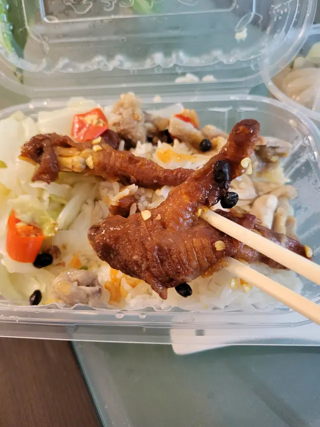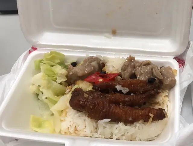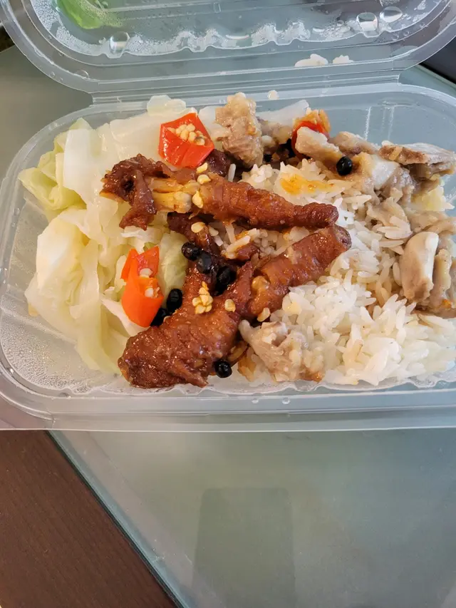 之前喺附近返工,久唔久都會幫襯唐記包點嘅鳳爪排骨飯外賣攞走返公司食。 最近 Home Office多, 好少出街食飯,今日經過唐記,見到熟悉嘅鳳爪排骨飯, 忍唔住買咗個返屋企做晚餐。材料份量不少,有鳳爪兩隻,排骨六至八粒左右。 排骨主要係豉汁蒸排骨嘅味道,簡簡單單又好味。 鳳爪都整得唔錯,喺酒樓嘅䜴汁蒸鳳瓜的味道。啲飯份量都好多,起碼有一碗半,加埋甜豉油好正!里餐可以話係又平又抵食又滿足!我會keep住幫襯唐記的!查看更多