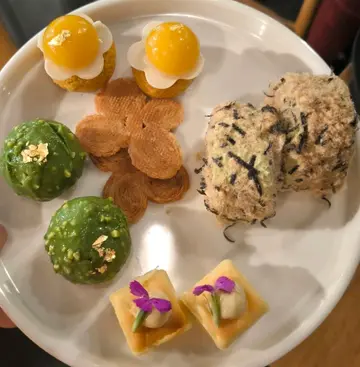 過去數年也有參與榴槤自助餐,每次也有驚喜(如有香檳,有特選榴槤試食-5顆及介紹,有榴槤雪糕……)今次見有榴槤tea set就與朋友去試。過去經驗人潮不絕,超旺場。驚訝發現2:45都沒有太多人,那麼深感疑惑。先有榴槤椰子燉湯,超清甜,潤肺,是今次菜式最佳之作。有三層,第一層為加勒比海野生龍蝦尾-肉質超有咬口,都大大件,配以茄汁酸甜感覺,增加食慾,選是主廚精心之選;麥皮軟殼蝦-野味香口,蝦也炸得香脆。第二層-泰式蟹肉配三文魚子-此層最佳之作,有多層口感,味道多層次,蟹肉味鮮,三文魚子在口內爆開,十分相配;炭燒馬來西亞烏達魚肉-只有辣味,作為辣妹的我不大欣賞;泰式香辣熟蝦杯-特色不多,唯弓可說是蝦新鮮,味道層次也不多,只有辣的感覺。第三層有兩款甜品及有3款榴槤肉:榴槤班蘭蝶豆花糯米飯-糯米飯有咬口與班蘭味也出色;榴槤椰子蝶豆花西米杯-軟滑入口即溶,不錯。榴槤肉則有:貓山班;紅蝦;柔佛黃金。榴槤肉味濃,是出色欣賞度高,但只有三顆。榴槤雪糕配榴槤肉是好味,仲有朱古力雪糕,也可惜感覺太單薄了,多一兩款蛋糕會加分。