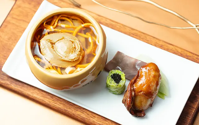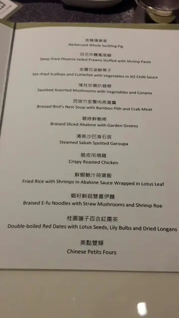 唯港薈九點宴會廳是一個時尚華麗的場地,配備水晶玻璃燈和醉人的維港景致。化皮乳豬件伴玫瑰煙鴨胸是一道粵式拼盤,將兩種不同的肉類搭配在一起,展現出豐富的口感和層次。乳豬皮脆肉嫩,油而不膩,玫瑰煙鴨胸則香氣四溢,肉質細嫩,兩者相互輝映,令人垂涎欲滴。金瑤扒珍菌時蔬是一道清淡而健康的菜式,以時令的蔬菜和珍貴的菌類為主要材料,再以金華火腿增添鮮味。蔬菜爽脆清甜,菌類鮮香彈牙,火腿則帶出一絲鹹香,整道菜式色彩繽紛,味道平衡。牛肝菌竹笙燉海螺是一道滋補而美味的湯品,以牛肝菌、竹笙和海螺等高檔食材熬製而成。牛肝菌有「山珍之王」的美譽,具有濃郁的香氣和滑嫩的口感;竹笙則有「天然味精」之稱,能增加湯品的甘甜度;海螺則富含蛋白質和鈣質,有助於強身健骨。這道湯品不僅美味,還有益於身體健康。總括而言,在唯港薈九點宴會廳享用了一頓豐富而精緻的中式美食,每道菜式都有其特色和風味。