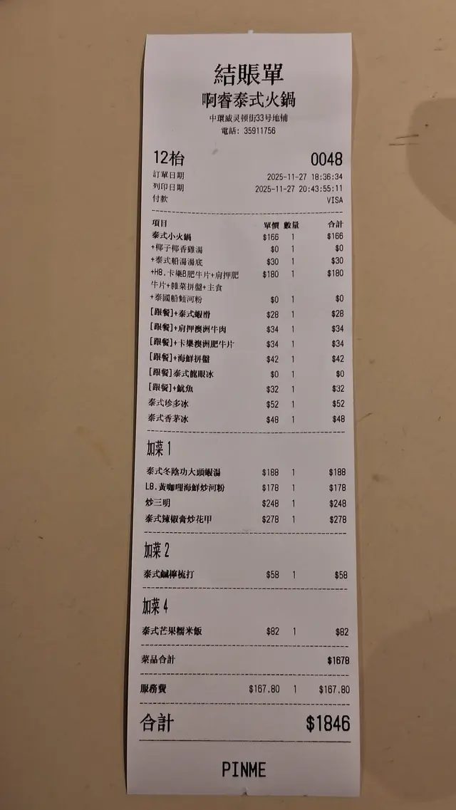 啊睿泰 (中環) 網址: https://s.openrice.com/QrbS0yZc7W0 地址: 香港中環威靈頓街33號地舖 電話: +852 35911756