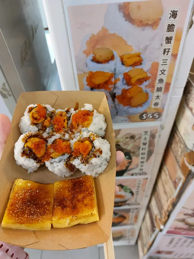 呢間外賣店除咗出有海膽手卷、仲有玉子燒,見到其他人買都好大舊好吸引😍今次就試試軟殼蟹芝士口味($38)🦀一攞上手已經feel到超級熱,面頭除咗有半隻炸軟殼蟹、仲唧滿沙律醬,玉子外邊亦都煎到微微濃,賣相加埋香味真係滿分👍🏻軟殼蟹炸到變曬空心,好似食緊炸到透嘅蝦頭蝦尾,脆得嚟唔會成口粉漿,個人嚟講非常鍾意😆玉子燒就偏硬身,冇動L動L嘅感覺,但勝在蛋味幾濃又夠厚身🙈最估唔到嘅係玉子燒中間仲有飯,根本係個大型版軟殼蟹玉子壽司🤣不過芝士味完全被沙律醬掩蓋,亦都唔係拉絲嗰種,但整體嚟講都幾好味😋餐廳提供4款醬汁比大家自己加,因為沙律醬都好濃味,所以應該係加落丼飯/壽司,不過我好奇佢個特辣wasabi有幾辣,就加咗幾滴試😂結果攻鼻到瘋標眼水,平時唔食開真係唔好試🤪…查看更多