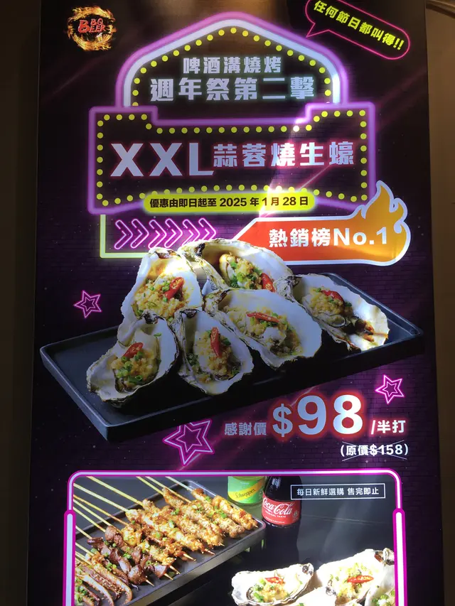 XXL 蒜蓉燒生蠔套餐$98 有6大隻燒生蠔肉質飽滿