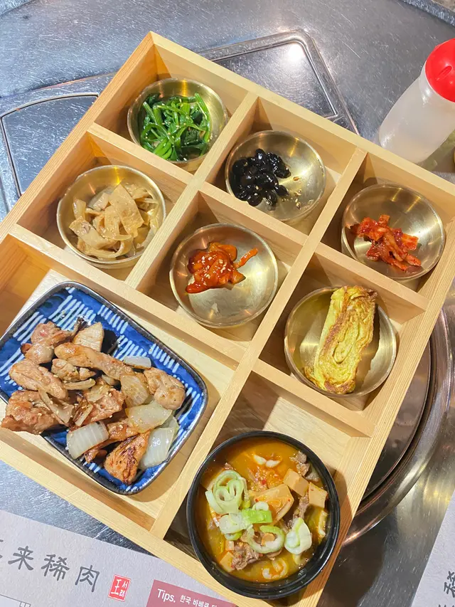 喺喜來稀肉享用一餐,感覺相當滿意!兩隻醬油蟹連紫菜飯$400,性價比高得驚喜。蟹肉新鮮彈牙,醬油滲透得宜,帶出濃郁嘅鹹香味,配上微辣嘅紅椒同翠綠嘅蔥花,味道層次豐富,令人回味。紫菜飯以海苔包裹飯粒,散發獨特嘅海鮮香,上面嘅橙色魚子醬更添高級感,口感滑溜又開胃。環境方面,店內乾淨整潔,裝修簡約舒適,服務員態度親切,主動問候同補充用具,體驗不俗。唯一小小不足係蟹肉份量似有改善空間,如果可以再多啲,定會更滿足。總體嚟講,呢度嘅菜式同服務都值得推介,特別適合同朋友聚會或家庭用餐。建議預約位,因為人流頗多。食完覺得物有所值,下次會考慮試吓其他招牌菜,期待再嚟!如果鍾意海鮮同韓式風味嘅朋友,喜來稀肉真係一個唔錯嘅選擇,強烈推薦!