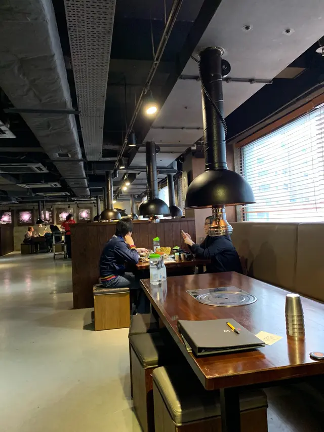相比起尖沙咀店, 這裡的面積應該大了幾倍, 亦因為在灣仔, 平日晚上人流並不算多, 室內座位多, 空間感很充裕, 店內的抽氣系統亦很好, 走進內幾乎沒有嗅到半滴油煙味一坐低,侍應會奉上三款配菜,泡菜、芽菜同洋蔥水冷麵 ($75) - 喜歡那酸酸甜甜的口感, 十分醒胃. 麵身有結成一團的情況, 但用點力即可鬆開. 麵條很彈牙煙韌, 加上醋和芥末調味後, 味道十分清新.生菜配上燒肉一齊食!亦會試先準備蛋漿倒在爐邊,一邊泡菜味、一邊芝士味,而且蛋漿同配菜可無限添加!哈哈,剩食蛋都已夠飽查看更多