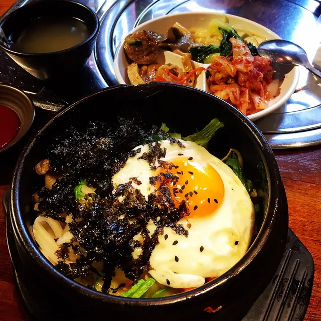 午飯時間同事話想食韓國菜公司在灣仔所以便想起有間”喜來烤肉”之前也試過他們這裏的午餐也不錯地點近公司所以就去了這個餐廳,搭lift上到3樓這裡地方很闊大,枱嘅數量多但係唔太迫十分夠空間感好舒服,餐牌望上去感覺好似去咗韓國一樣,最後我哋都點了石鍋拌飯,點完餐之後有一個自助嘅小菜區共有六款小菜,泡菜、魚糕、白菜仔、芽菜、草菇及貢丸/牛丸都幾特別,仲有當然唔少得嘅蘿蔔清湯味道都不錯。到了上菜表面有滿滿嘅紫菜,下邊亦都有切好咗嘅蔬菜、蘿蔔、芽菜有少許肉,同埋一隻太陽蛋再加一碟拌飯將簡直完美。不過如果唔鍾意食飯焦嘅朋友就要留意或者要同侍應先講一下,因為石鍋加熱嘅時候佢嘅飯已經有些飯焦,所以要即刻馬上拌勻。整體是好吃又不嘈吵,是一班人吃午餐的好地方👍🏻👍🏻查看更多