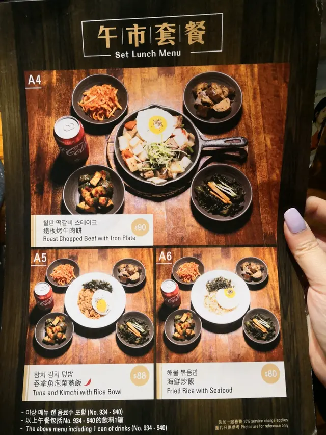 記得呢間韓燒以前黎HK開店時, 晚晚大排成龍好巴閉, 個時食住韓風呢條水.今時今日原來已開左好幾間分店.呢間重好大間TIM!入到黎見到都重係好多打工韓妹, 香港店員好似得一個咁,落單都係係紙度寫, 免去溝通問題~ SET LUNCH唔太多選擇, 都幾難揀呀!落完餐後, 上菜都未有前菜, 先知要自己出去羅...完全冇通知咯...有6款前菜, 重有湯揀, 不過睇落好似好頹咁...我地都係羅左少少就算, 湯個D 冇試.我地每樣試少少就夠了. 麻麻地,.唔水ENCORE.我都真係唔係好揀到,.哈. 最後揀左呢個..吞拿魚泡菜蓋飯.$88我認為係食緊喵糧WKAKAKKAA 都OK 既, 不過就好似有D 悶..朋友既海鮮炒飯. $80 睇落就好似冇乜鑊氣咁~ 試左一啖咋鐵板辣炒豬肉. $90 呢個睇落好似正常D, 夠哂味.鐵板芝士辣炒豬肉蓋飯. $90呢個超級HEAVY 呀, 連埋D 飯係上面撈, 吸哂D 油 WAKAKKA查看更多