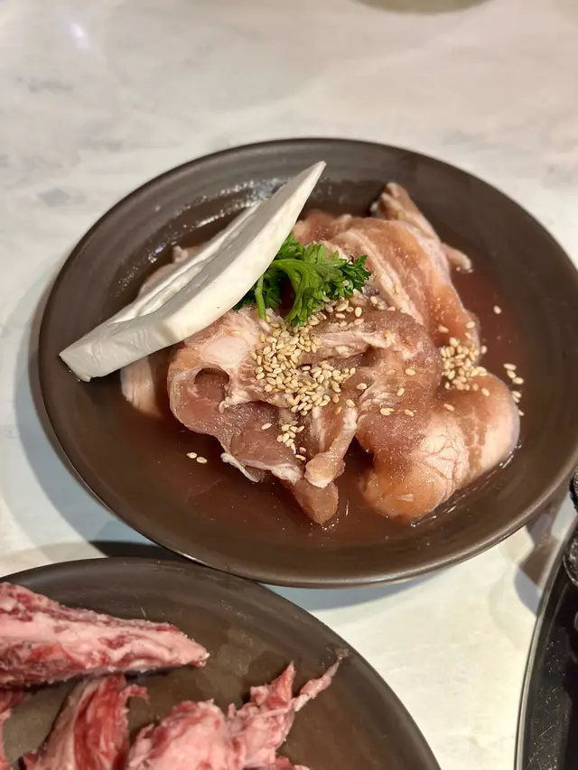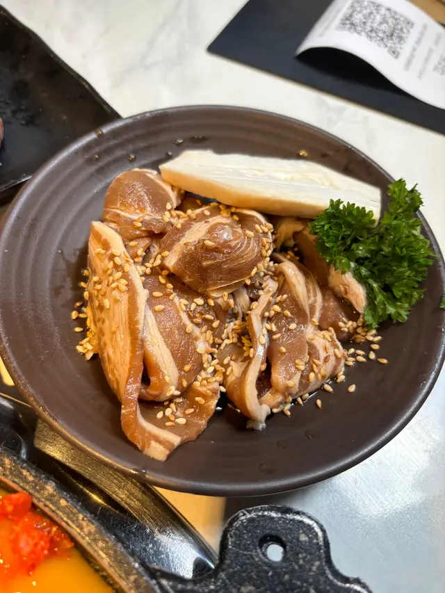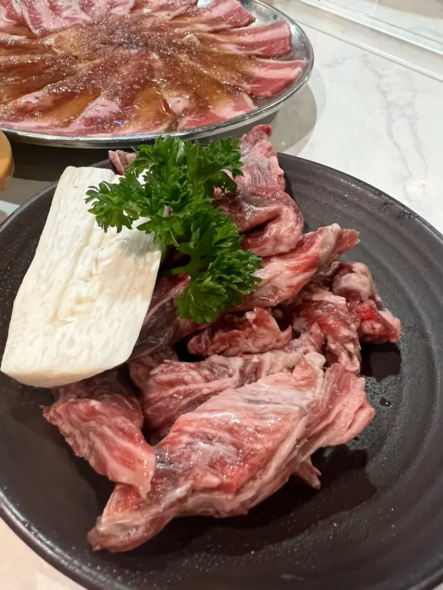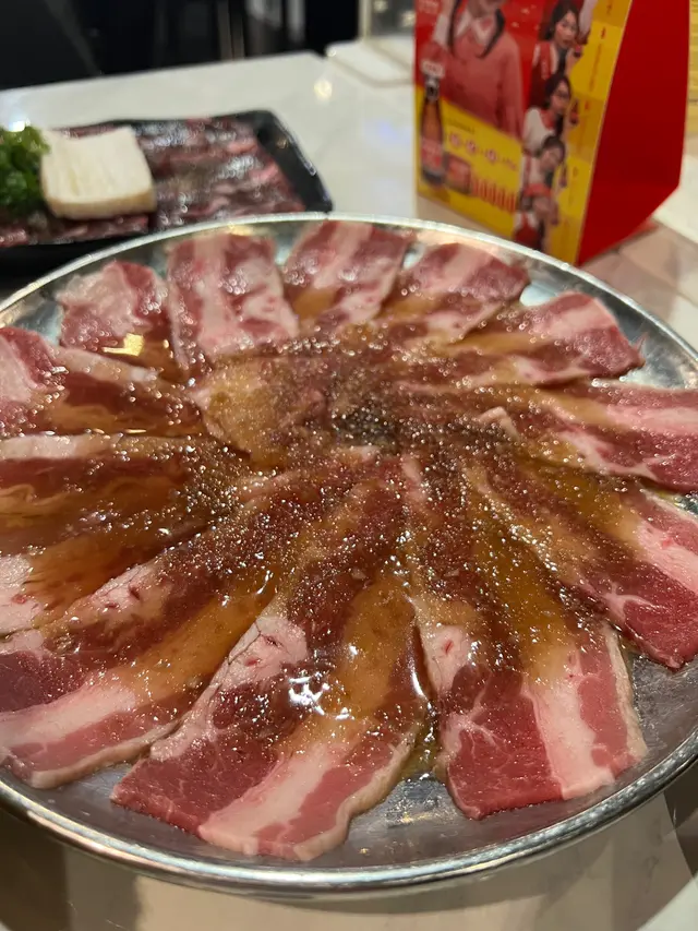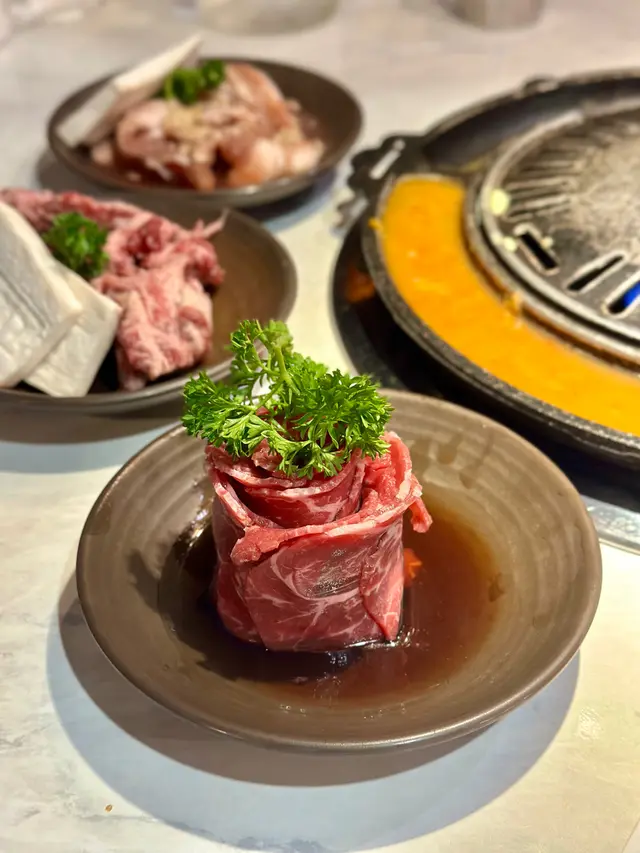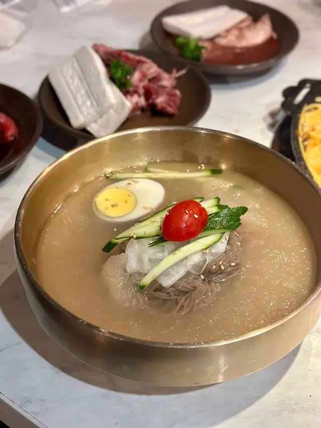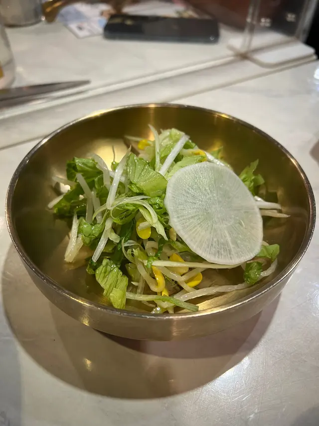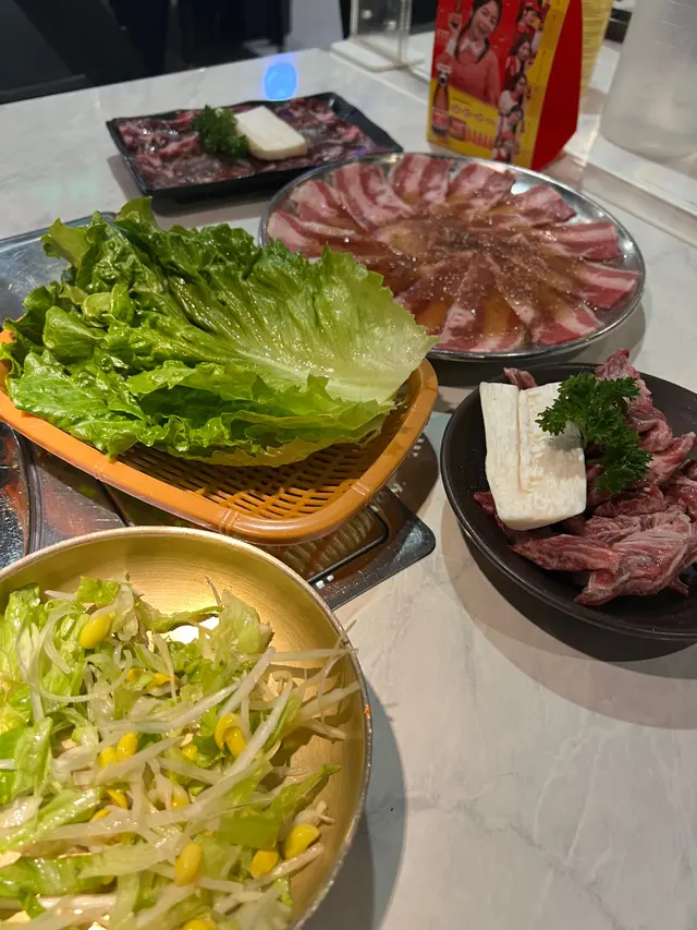 前菜可以自己去拎,任裝。特別要講講佢嘅泡菜,由於我本人比較鍾意食偏甜嘅泡菜,呢間嘅泡菜就做得好好!味道甜甜地,而且好入味,唔會太酸!😆1️⃣牛舌、雪花肉呢兩款肉類都好好味!佢嘅醃料好香有少少甜甜地又有啲鹹鹹地,味道適中,燒完好入味!2️⃣水冷麵水冷麵嘅嘅質感軟硬適中,好有彈性!而湯底味道都啱啱好,唔會太酸😋3️⃣泡菜煎餅頗失望!裏面嘅泡菜好酸,而且煎餅太腍,我同男朋友食咗一半已經食唔到落去🥹🥹至於服務態度,店員服務好周到,佢見到我哋拎住大袋放唔落凳底,即刻拎多張凳俾我哋擺袋😆…查看更多