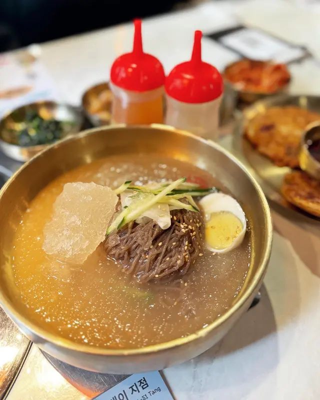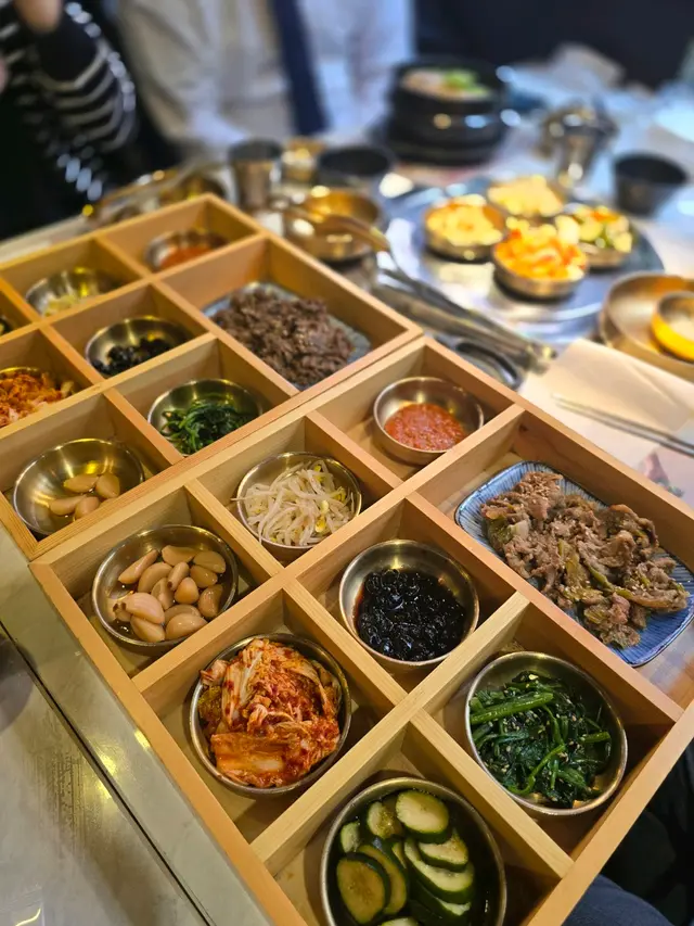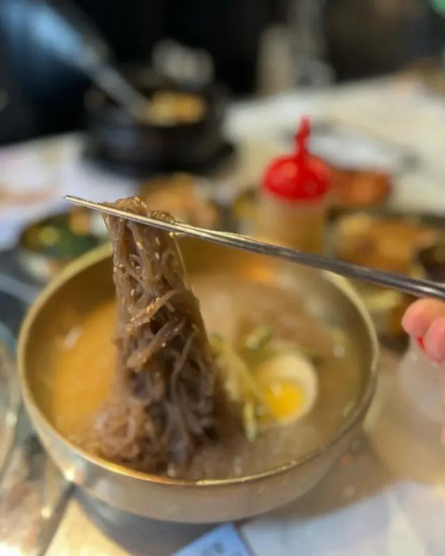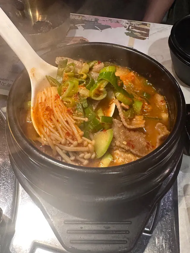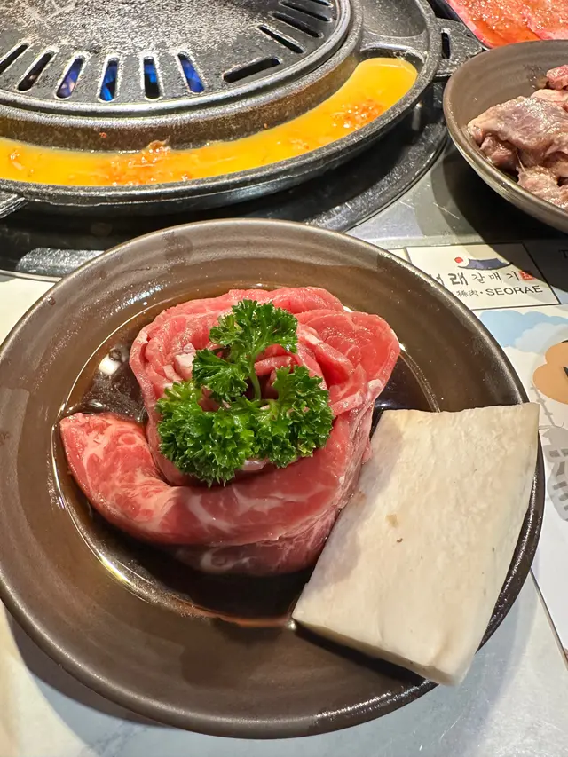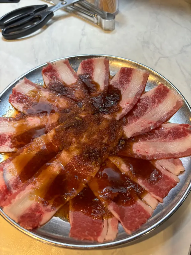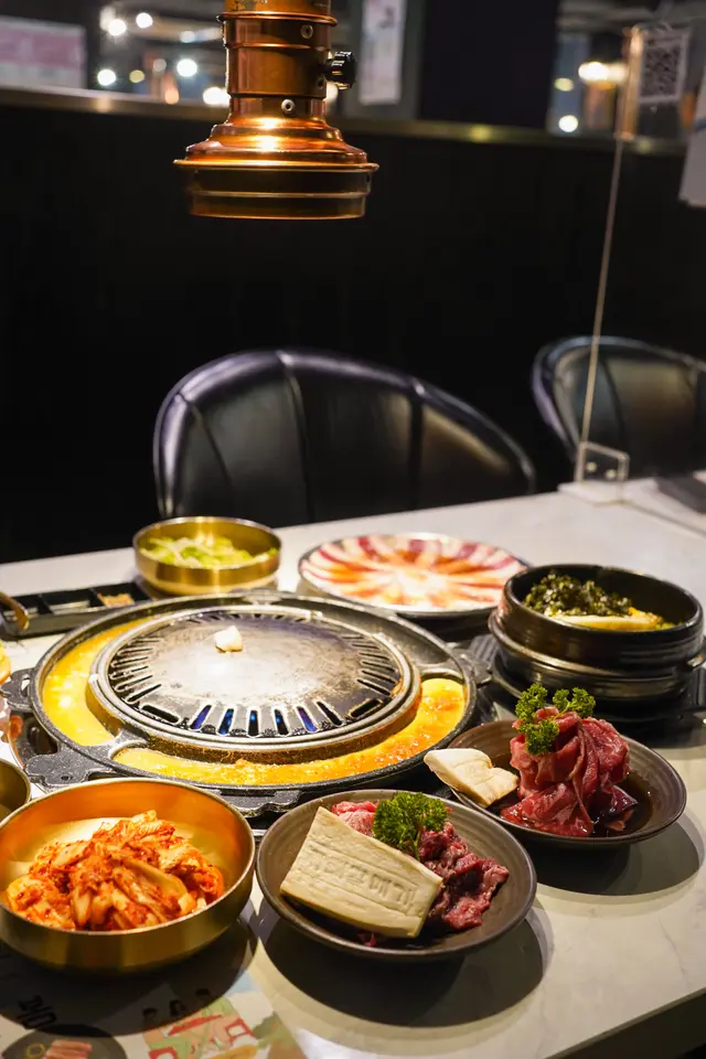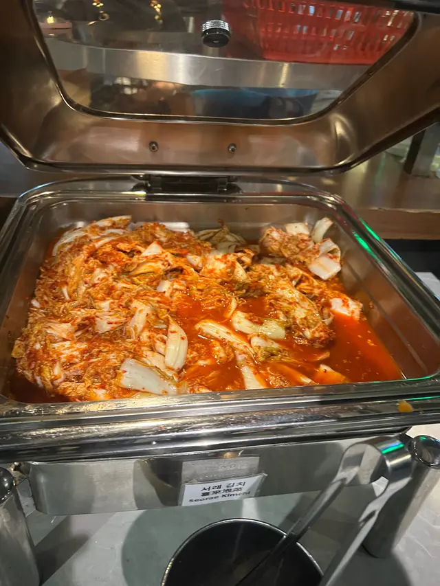 前菜可以自己去拎,任裝。特別要講講佢嘅泡菜,由於我本人比較鍾意食偏甜嘅泡菜,呢間嘅泡菜就做得好好!味道甜甜地,而且好入味,唔會太酸!😆1️⃣牛舌、雪花肉呢兩款肉類都好好味!佢嘅醃料好香有少少甜甜地又有啲鹹鹹地,味道適中,燒完好入味!2️⃣水冷麵水冷麵嘅嘅質感軟硬適中,好有彈性!而湯底味道都啱啱好,唔會太酸😋3️⃣泡菜煎餅頗失望!裏面嘅泡菜好酸,而且煎餅太腍,我同男朋友食咗一半已經食唔到落去🥹🥹至於服務態度,店員服務好周到,佢見到我哋拎住大袋放唔落凳底,即刻拎多張凳俾我哋擺袋😆…查看更多