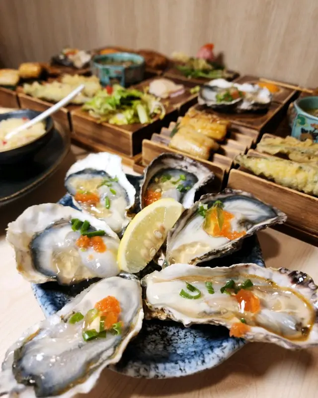 特選生蠔$538,除了生蠔同焗蠔任食,仲可以任食串燒同飲品。🦐海鮮湯非常鮮甜,用來暖胃。🐟懷石八品有梅子漬車厘茄、醋漬青瓜伴蟹肉、三文魚同帆立貝、燒鰻魚、雞肉串蘿蔔、明大子芝士薯蓉、牛油果吞拿魚蓉、最後係蟹肉羊羹。齋食呢個都覺得好高質了。🦪生蠔有柚子啫哩、辣椒蘿蔔蓉、蔥花、昆布漬、雞尾酒汁味。都大隻飽滿。我就鍾意柚子啫喱同辣味蘿蔔蓉,呢兩款有味蕾上的衝擊♥🦪焗蠔多款選擇,任君選擇:有清酒、蒜味、辣蒜、麻辣、芝士、同冬陰功。冬陰功、麻辣酸酸甜甜辣辣好過癮。🍢串燒點左雞腎、雞軟骨、秋葵、餃子、大蔥車厘茄串、枝豆、味醂魚乾和風沙律。推薦餃子同味醂魚乾,餃子香脆多汁,味醂魚乾有咬口。🍚牡蠣茶漬飯湯底勁鮮甜,配搭一流。🎂柚子芝士蛋糕芝士夠滑,配上柚子的清香中和,別有一番風味。…查看更多