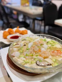 $198起歎足8道懷舊手工菜!✨罕見錦鹵雲吞重現經典🎊土瓜灣嘅喜滿樓一直以傳統風味同懷舊菜聞名🥢,最近試咗佢哋嘅「超筍懷舊宴」,真心抵食!套餐可以揀包唔包燉湯,我今次就試勻多款經典菜式。首先個爵士燉湯夠晒火候,飲落清甜滋潤❤️。鎮店芝麻雞果然名不虛傳,雞皮香脆,芝麻味濃,肉質保持嫩滑🍗。鳳尾鮮蝦球大大隻,爽口彈牙,炒得夠鑊氣🔥。今次有幾道菜特別有驚喜!西蘭花炒龍躉魚肉鮮嫩,西蘭花爽脆🥦。家鄉蓮藕煎肉餅煎得香口,蓮藕粒增添口感,食落唔會太油膩👍。全晚最懷舊必定係錦鹵雲吞!😲 呢個菜式而家好少酒樓會做,炸雲吞脆卜卜,配嘅唔係普通甜酸汁,而係似咕嚕肉汁,裏面仲有蝦球、叉燒同豬潤,味道層次豐富,真係重現舊式酒樓風味🎩。農家臘味炒飯夠晒乾身,臘味香濃🍚。最後以家鄉糯米糍作結,有芝麻同花生味選擇,煙韌軟糯🍡,為成餐畫上完美句號。「喜滿樓超筍懷舊宴」每位$198(不包燉湯)/$248(包燉湯)💰,四位起,星期一至四適用(假期除外)。想食記得要訂座時預訂套餐📞。整體而言,呢個懷舊宴性價比高💯,尤其適合想重溫傳統粵菜風味,或者帶長輩一家聚餐👨👩👧👦。菜式有心思,份量十足,絕對係土瓜灣區內抵食之選!🎉…查看更多
