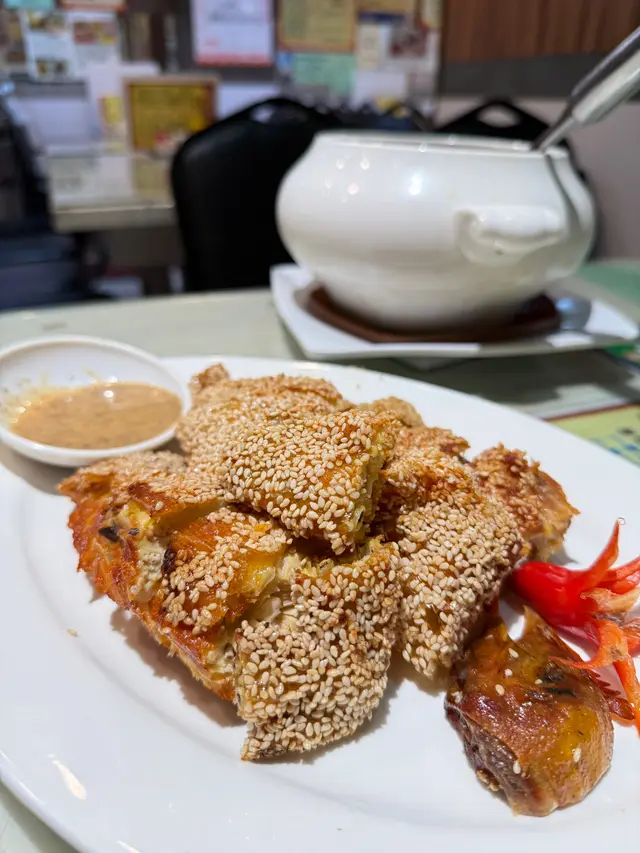 呢間喺土瓜灣開咗好耐,熬過疫情嘅喜滿樓菜館,主打傳統風味懷舊特色菜,係街坊口碑極好嘅老字號,晚晚爆場!今次試咗佢哋嘅「喜滿樓超筍懷舊宴」,每位248元(包燉湯)「不包價$198」,四位起,星期一至四適用(假期除外),真係每味都有驚喜!(需要預訂)🍲爵士燉湯用懷舊配方以哈密瓜跟雞腳慢火燉成,湯底濃郁鮮甜啖啖膠原,飲落暖笠笠夠滋補。 👍👍🍗鎮店芝麻雞用上等靚雞,外皮鋪滿香脆芝麻附秘製芝麻醬,皮脆富油香芝麻氣爆棚,雞肉嫩滑緊緻留住肉汁,沾醬雙重芝麻風味一流。 🍤黑松露蝦多士大大件脹卜卜,表層烤金黃酥脆四角香脆,內層蝦肉紮實彈牙包原隻大蝦,黑松露畫龍點睛添香氣,啖啖肉超滿足。 🍤鳳尾鮮蝦球爽口彈牙超有誠意。 🥒翠玉瓜炒龍躉球鑊氣滿滿又健康。 🐟家鄉鹹魚煎肉餅鹹香惹味好送飯。 🍲八珍豆腐加豬膶、叉燒冬菇等同煮,柔潤香濃足八珍入味,豆腐外脆內嫩汁醬濃淡得宜。🍚農家臘味炒飯粒粒分明,臘味香到不得了。 🍡最後甜品家鄉糯米糍軟糯香甜,完美收尾! 整體食物質素高,價錢親民,啱一家大細/朋友聚餐。係想搵返傳統粵菜味嘅人,一定要試下呢度!。…查看更多